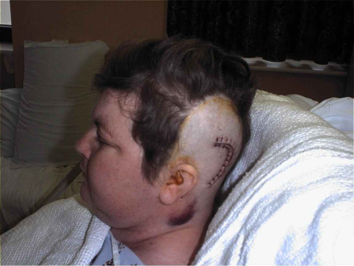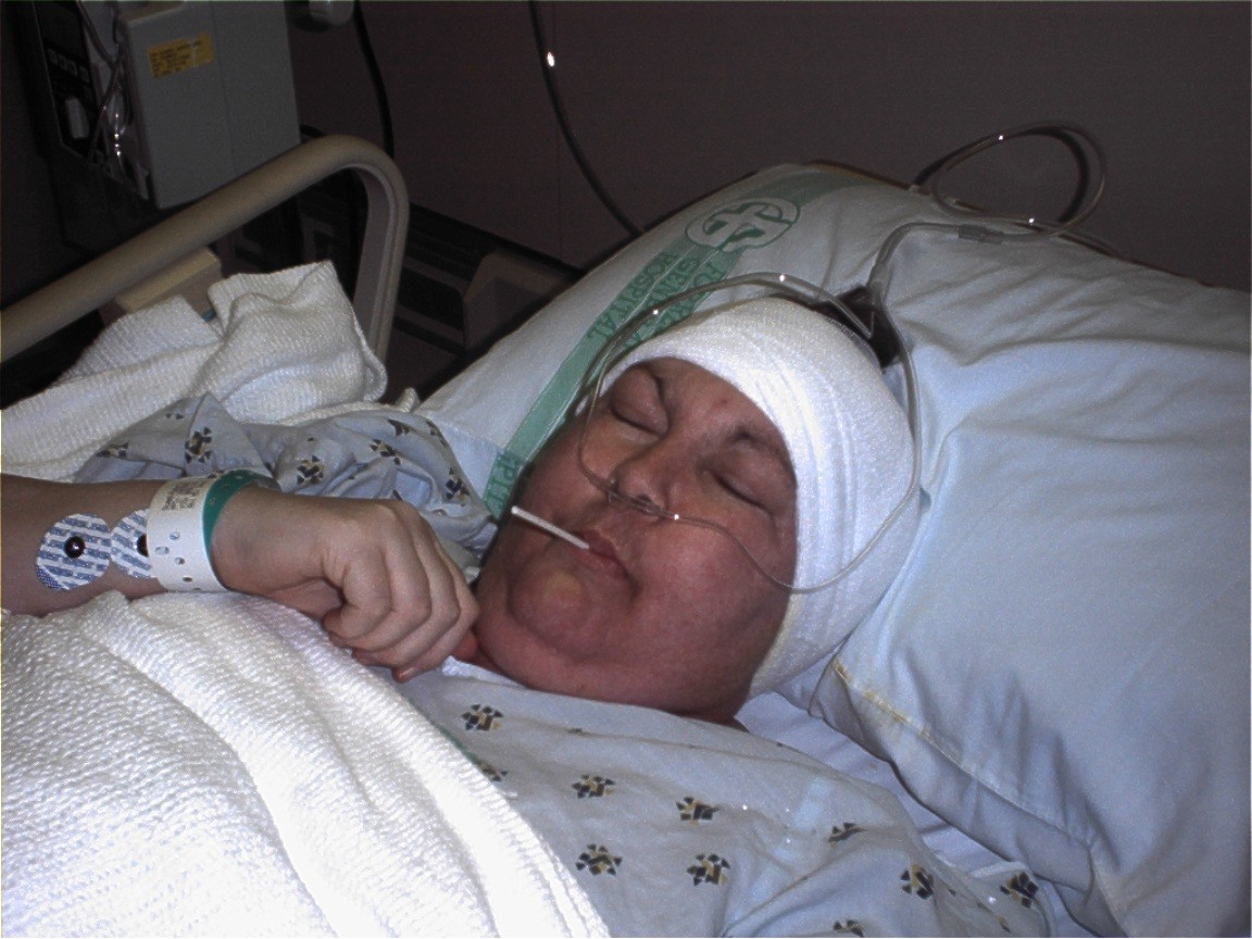 She started going to the University Medical Center in Jackson, Ms. they seem to think it was all in her head, they said she didn’t have enough symptoms to warrant an MRI, all they ever wanted to do was shove pain pills at her. She couldn’t take any of those because it made her so sick. This went on for a year, she would go in for severe headaches and all they would do is a chest X-ray. Then someone told her about Sharps clinic in Tylertown, Ms. Just a small clinic, but the first thing they did was order an MRI to be done in Jackson, (at the UMC) and they only scanned from the chin down to the shoulders. They found bone spurs in the neck spine. C5-C6 area so she setup an appointment with Dr. Charles Brent in Hattiesburg, Ms. He agreed to do the neck surgery on a Friday and go home Sunday, simple. Well all went very well he even said we could go home Saturday because she was doing so well. Then later that day she started acting funny, didn’t know me or the kids. So I immediately got the nurse and she called Dr. Brent, he knew something was very wrong, he did a CAT scan and MRI of her whole head. Then later that night at 2am he came in the room and told me and my son she had a massive tumor in the right frontal lobe of the brain. It had to come out now….no time to think about it. So she had surgery the next morning, it took him 10 hours he said most Dr.’s would of gave up, but he got all of it he seen